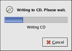 You can now use the ISO image file with cdrecord, the command line based CD recording utility. For more information about using cdrecord, refer to Section 11.3.2.2 Using cdrecord.