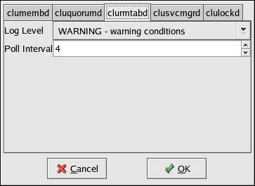 Each of these daemons can be individually configured using the Cluster Configuration Tool. To access the Cluster Daemon Properties dialog box, choose Cluster => Daemon Properties.