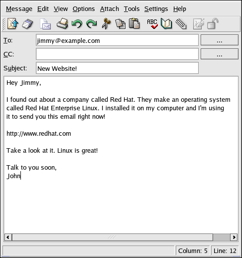 KMail is an email tool for KDE. It has an intuitive graphical interface similar to Evolution that allows you to send and receive email using a graphical interface. To open KMail, click on the Main Menu => Internet => More Internet Applications => KMail.