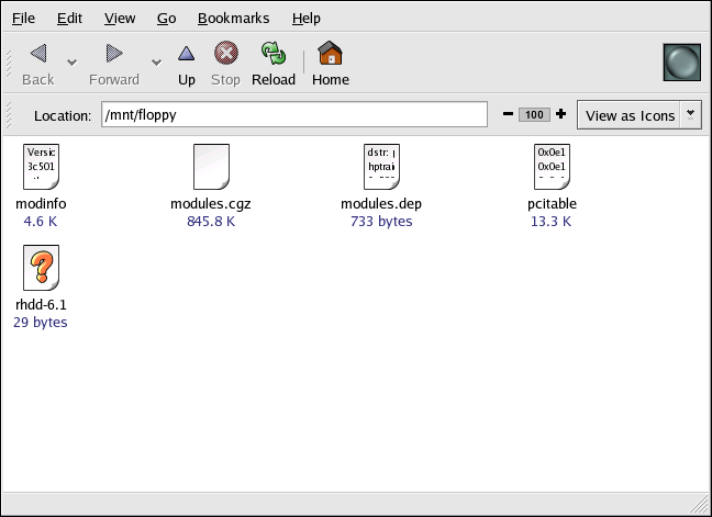 Now that the diskette has been mounted it is available to be copied from or written to. You can open, save, and copy files to/from it as you would normally do to your hard drive. You can even explore the diskette's contents in Nautilus (as shown in Figure 11-1) or Konqueror.
