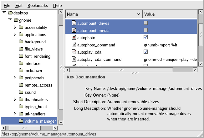 /desktop/gnome/volume_manager/automount_drives /desktop/gnome/volume_manager/automount_media |